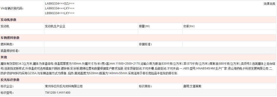 易燃液体罐式运输半挂车