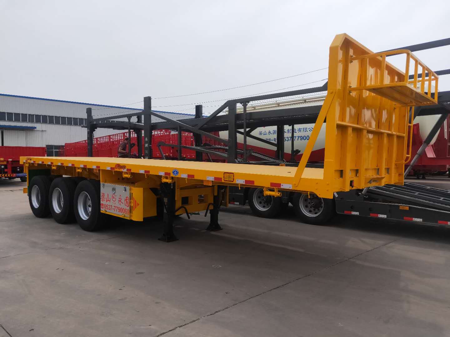 半挂车是车轴置于车辆重心(当车辆均匀受载时)后#面,并且装有可将水平和垂直力传递到牵引车的联结装置的挂车。半挂车一般是三轴半挂车,其种类分为十一米仓栏半挂车,十三米仓栏,jrs直播免费平台 等好多种类。是通过牵引销与半挂车头相连接的一种重型的运输交通工具。